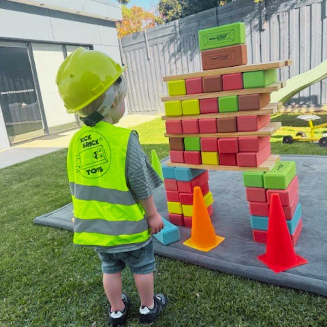 The Kickbrick range are made from top quality AS NZS ISO 8124 safety tested, soft but dense foam that ensures stability for super high, fun constructions but also won’t hurt if one happens to land on your head.